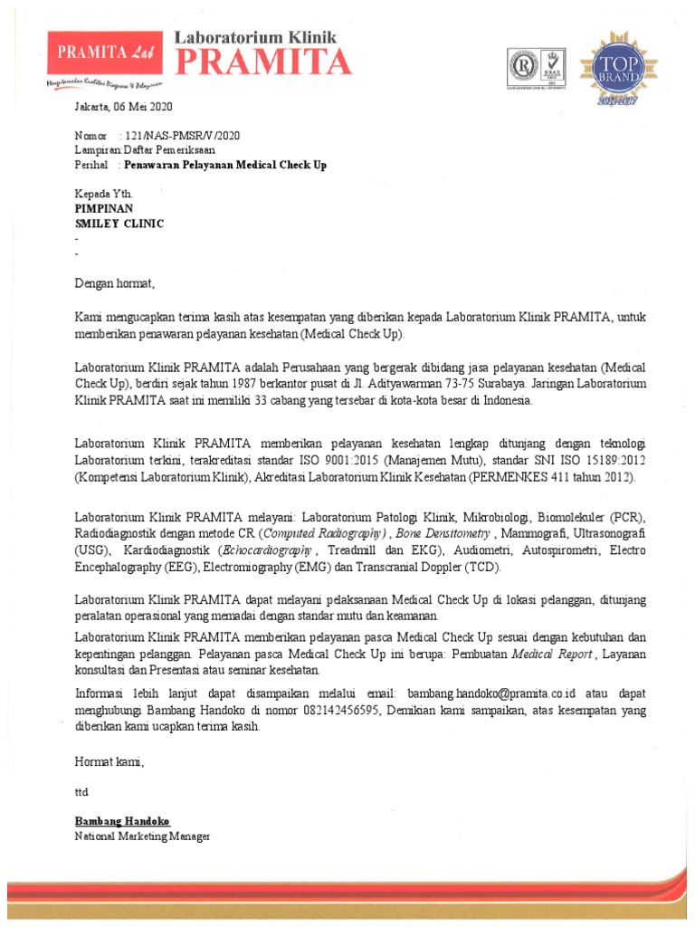Laboratorium pramita sendiri didirikan pada bulan oktober 1987 di surabaya dengan niat yang kuat untuk menghadirkan sebuah layanan laboratorium klinik yang lengkap, simpel, cepat dengan mutu. Akan buka pukul 06.00 besok. Setelah lebih dari 4 tahun pengabdian saya kepada kantor, akhirnya saya berkesempatan merasakan fasilitas medical check up (mcu). Pendahuluan laboratorium pramita merupan laboratorium yang bergerak di bidang kesehatan dan elektro medik ,dimana. Sebenernya mcu ini adalah fasilitas gratis kantor yang bisa.