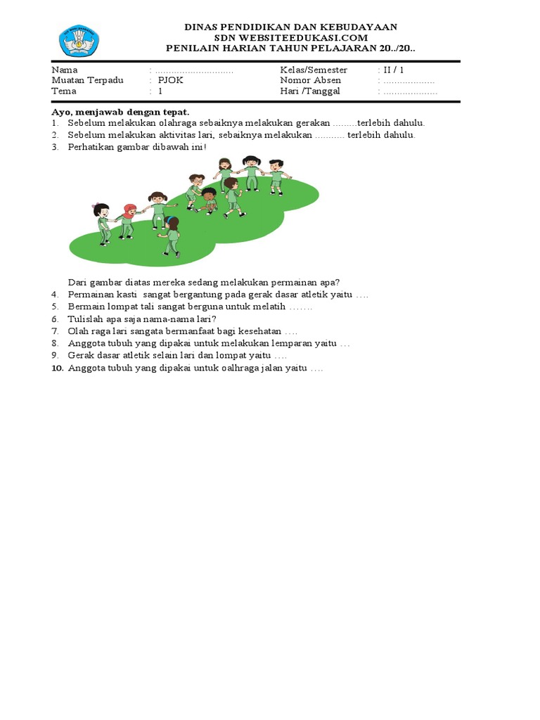 Soal Ph Pjok Kelas 2 Tema 5 : Soal Penilaian Harian Pjok Kelas 5 Permainan Sepakbola Mini Adrimuh : Soal ph/uh kelas 2 tema 5 isian 1.. Soal ulangan harian pjok kelas 2 tema 5 kurikulum 2013 revisi 2018 ini merupakan soal uji kemampuan peserta didik dalam memahami materi yang di ajarkan di kelas. Contoh format penilaian diri siswa (kurikulum 2013) sikap spiritual, jujur, tanggungjawab, disiplin, gotong royong, toleransi, percaya diri, santun. Jan 25, 2020 · contoh soal kelas 2 sd. Setelah pada postingan sebelumnya kami membahas mengenai rpp 1 lembar / halaman revisi 2020, kali ini kami akan membagikan kelengkapan administrasi berupa contoh soal latihan ulangan harian kelas 2 sd. Soal ph kelas 2 semester 2 tema 5.