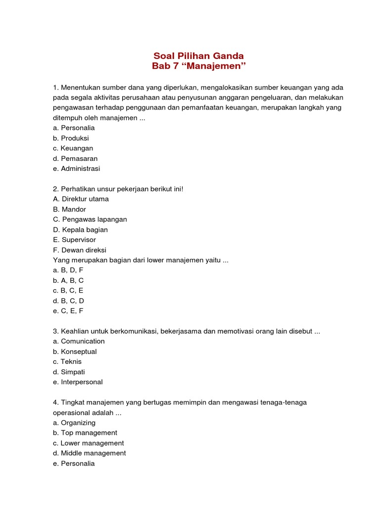 Istilah manajemen berasal dari "manage". Penerimaan tenaga kerja dengan cara nepotisme. Sari rahmah handayani x miia 4 29 1. Download soal essay manajemen 1. Latihan soal pilihan ganda materi manajemen sumber daya manusia beserta jawaban. Tugastugas membuat soal manajemen sumberdaya manusia tugas manajemen sumber daya manusia ahmad lisca abdillah ardiwinata harist wiguna rendy niechual rizky ramadhony sandika wahyu 2ea21 s1 management ekonomi universitas gunadarma 2011 Karena pemasaran menyediakan berbagai kebutuhan masyarakat sehari hari oleh karenanya peran pemasaran dalam kehidupan masyarakat tidak dapat di. Mar 10, 2021 · latihan soal pilihan ganda materi manajemen sumber daya manusia beserta jawaban. Latihan soal pilihan ganda bab manajemen sumber daya manusia. Memadukan pengetahuan konseptual dan teoritis dalam proses pendidikan jangka panjang secara umum ialah pemahaman dari definisi. Doc makalah contoh kasus manajemen sumber daya manusia. Contoh soal pilihan ganda dan jawaban manajemen keuangan manajemen strategik manajemen kesehatan manajemen waktu. Contoh soal pilihan ganda dan jawaban manajemen keuangan, manajemen strategik, manajemen kesehatan, manajemen waktu.