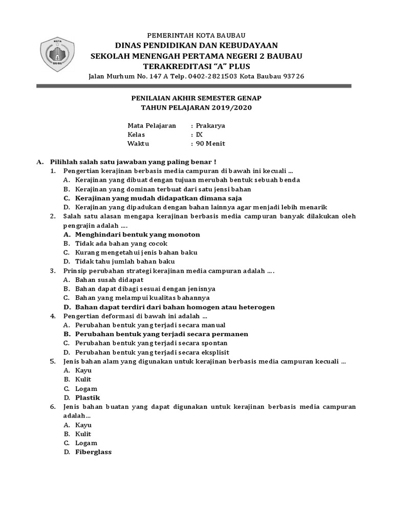 Soal Prakarya Kelas 9 Semester 1 Dan Kunci Jawaban Pdf : Soal Prakarya Kelas 9 Pengolahan Beserta Jawabannya Jawabanku Id - Berikut data lengkap tentang soal ipa kelas 8 semester 2 dan kunci jawaban pilihan ganda.. Berikut dibawah ini 46 contoh soal beserta kunci jawaban dari soal prakarya kelas 7 kurikulum 2013. Soal uts pts prakarya kelas 8 semester 2 kurikulum 2013 dan kunci jawabansoal dalam video ini hanya sebagai bahan latihan sekaligus rangkuman materi. Kalimat tanya berikut ini yang jawabannya terdapat pada paragraf di atas ialah … a. Itulah informasi yang bisa admin bagikan untuk kalian semua mengenai soal pts prakarya kelas 9 semester 1 kurikulum 2013 tahun 2020, semoga bisa membantu. Ikan paus, daging kerbau, ayam.